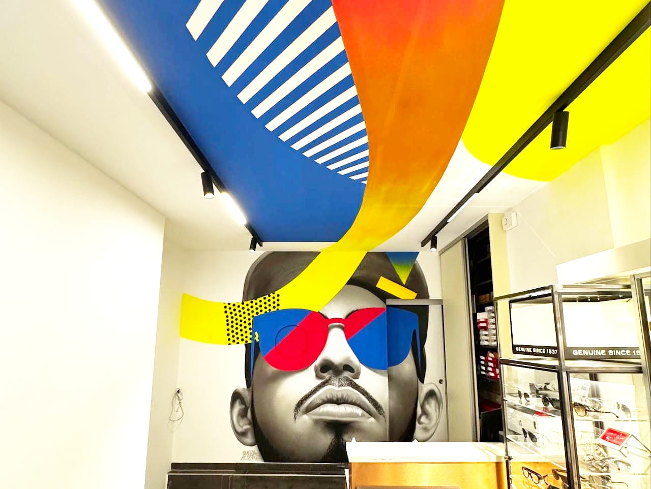 Nous avons sollicité l'équipe d'Urban Déco pour relooker l'un des murs de notre magasin d'optique...